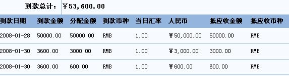 第四步:下图显示的到款信息,是指客户平帐中客户到款时间,到款金额,到款分配情况;如果对应的客户已经平帐,平帐信息才会显示数据,前提条件是客户已经平帐,否则为空。