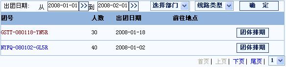 第一步:单击左边导航栏中‘应收应付’下的‘客户帐单管理’,进入客户帐单管理页面(如下图),可按出团日期,部门,线路类型查询满足条件的团体信息。 |