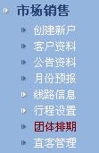 第一步:单击左边导航栏中‘市场销售’下的‘团体排期’,进入添加团体排期页面(如下图),可按出团日期,部门,线路类型查询满足条件的团体信息;然后按要求输入数据,单击保存按钮。 |