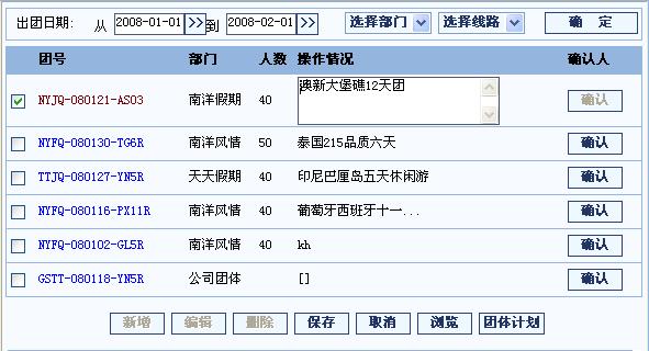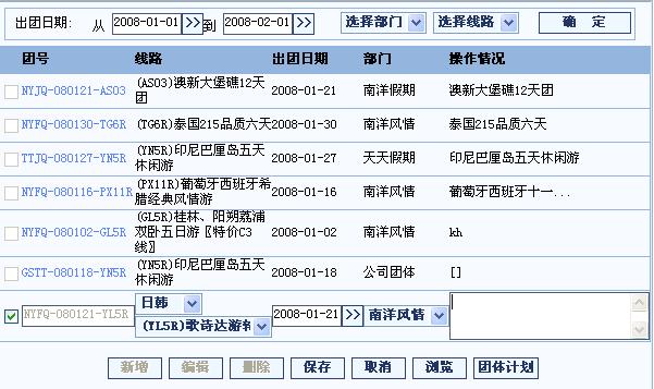 根据部门编码,出团日期,线路编码结合起来自动生成旅游团团号。 |