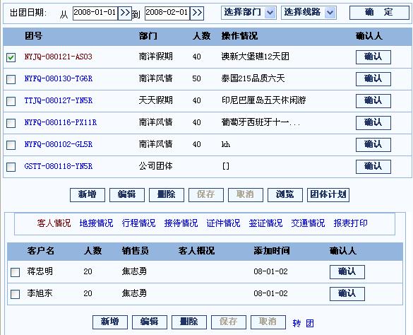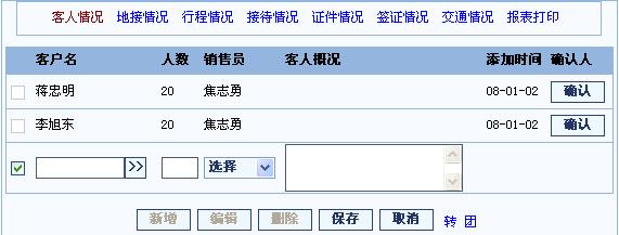第二步:添加完成旅游团时,然后选择要操作的团,点击‘客人情况’,添加客人情况信息。 |